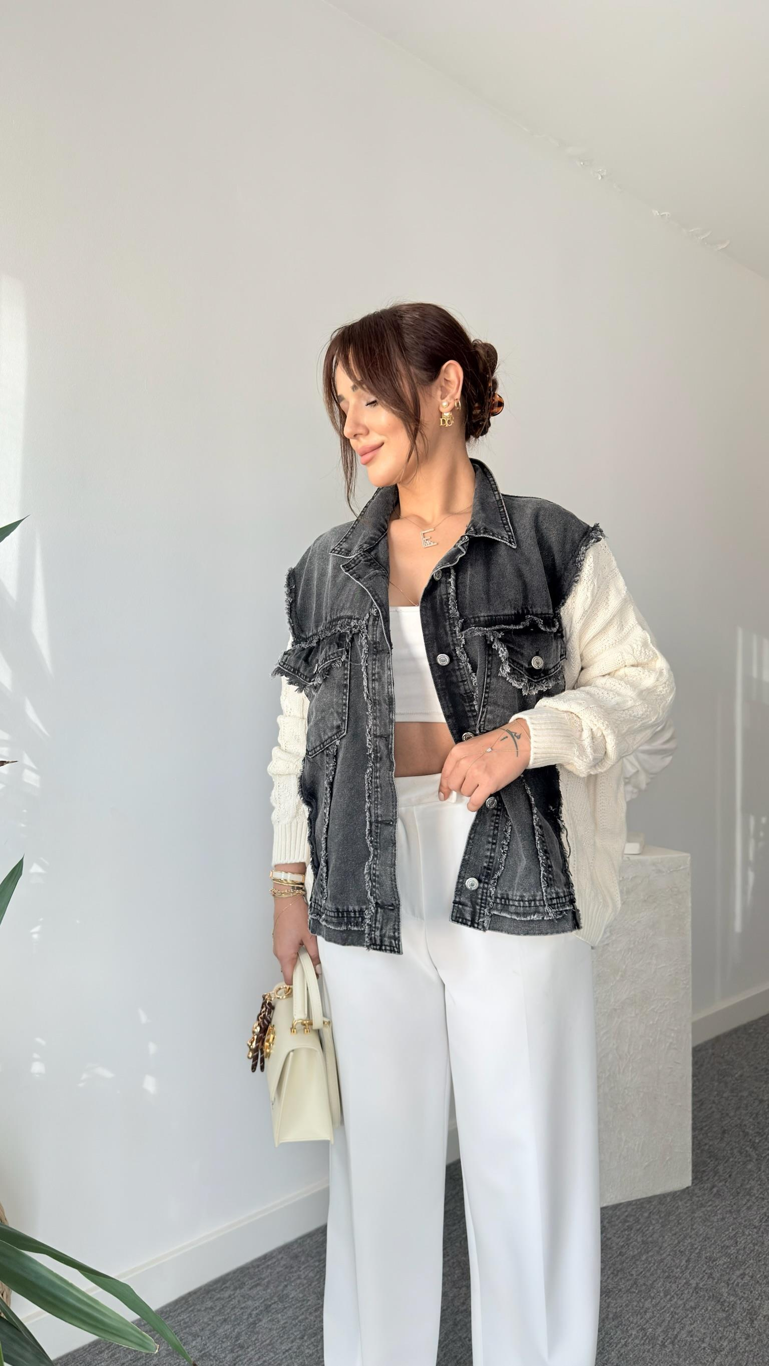 Antrasit Lorient Kollar Triko Detaylı Ceket