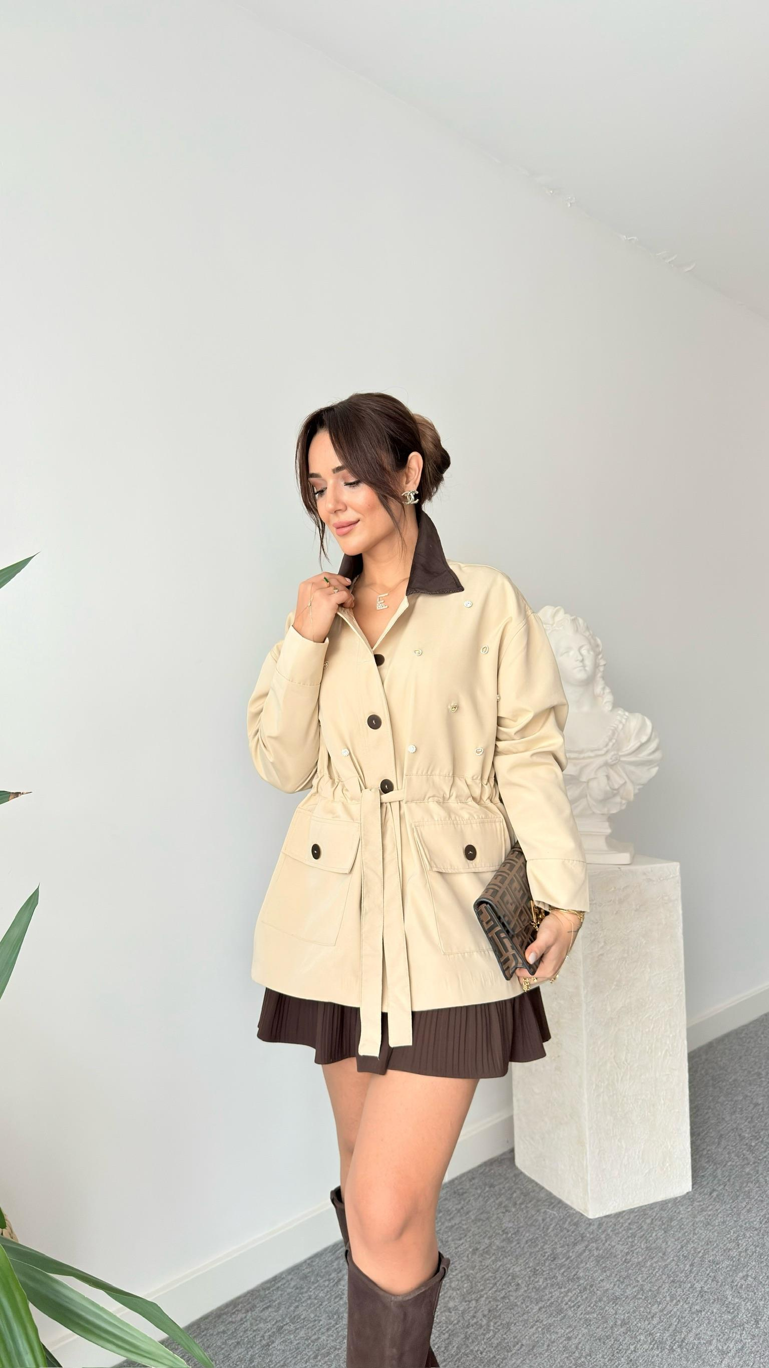 Arba Marka Model Taş Detaylı Kadife Yaka Trençkot