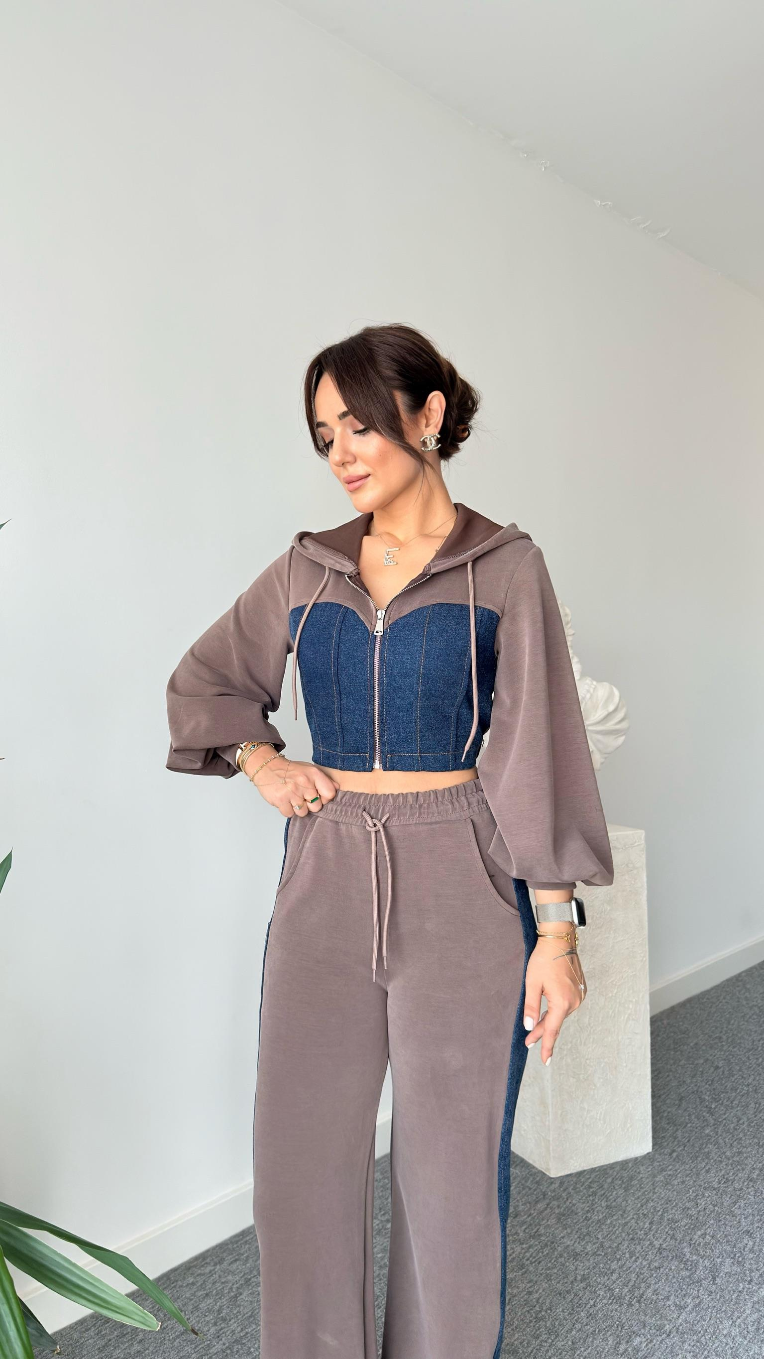 Kahve Bres Kot Garnili Modal Eşofman Takımı
