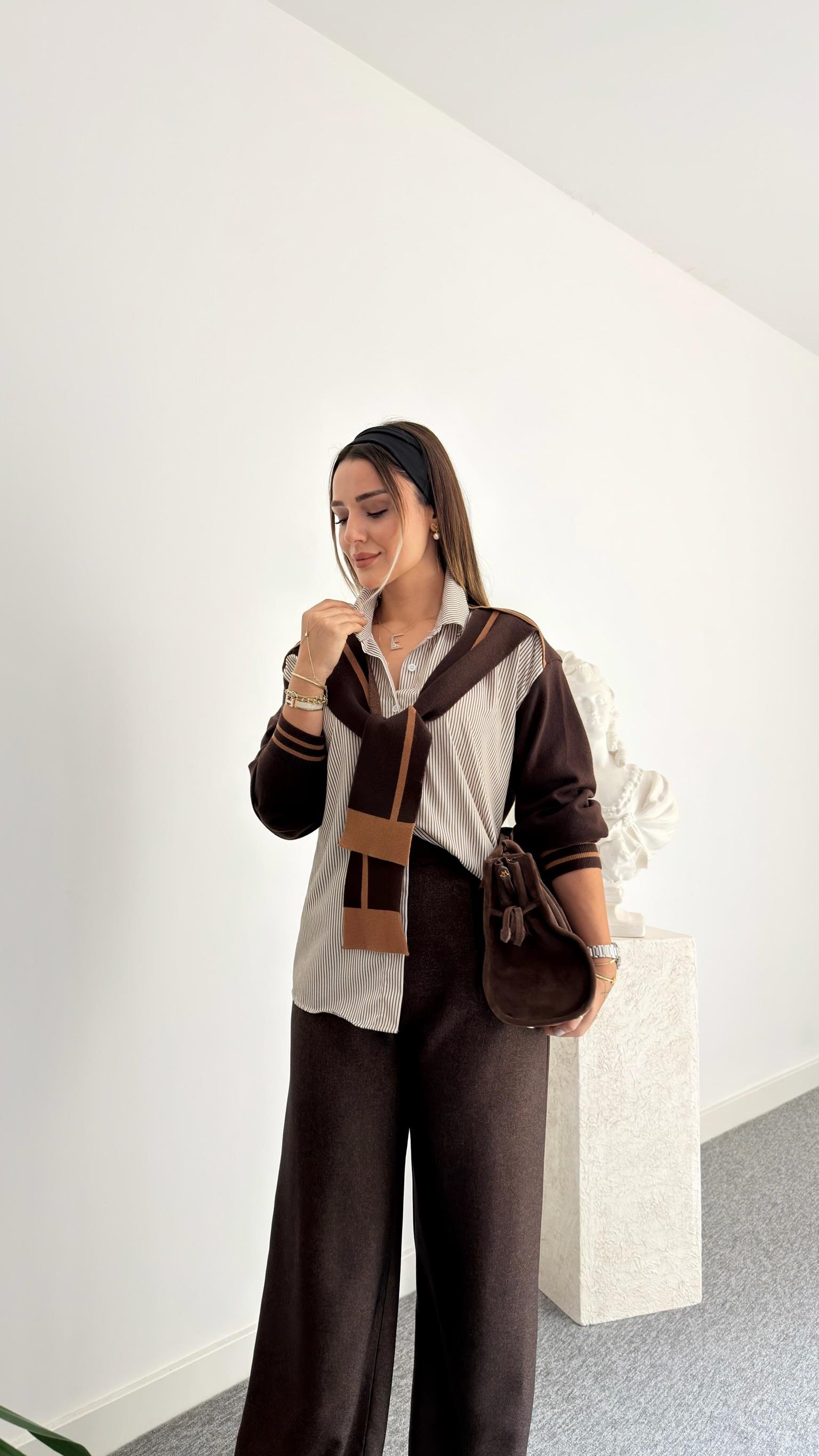Kahve Ferre Tws Model Sırt Trikolu Gömlek