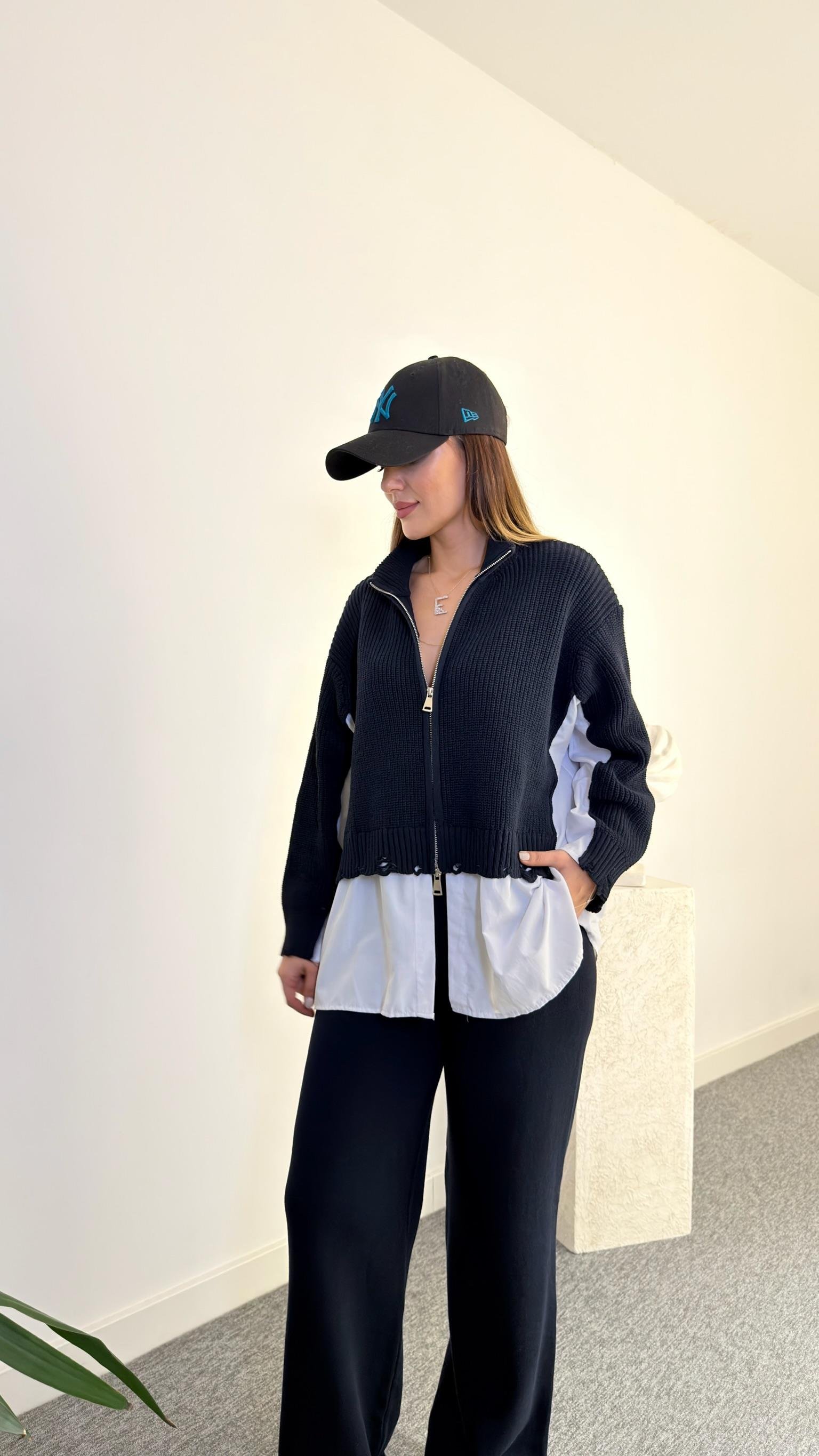 Lacivert Cuire Gömlek Detaylı Triko Takım