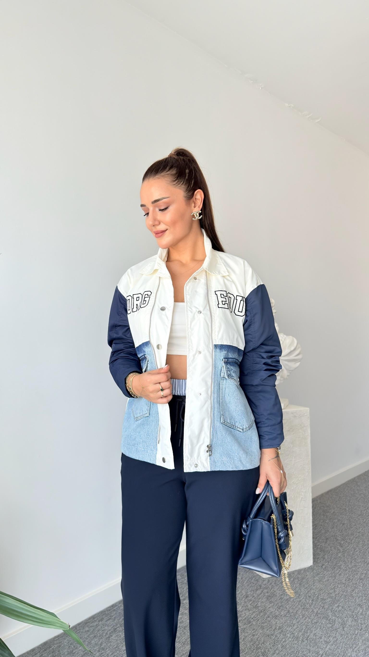 Lacivert Gorgeous Yazılı Garnili Ceket