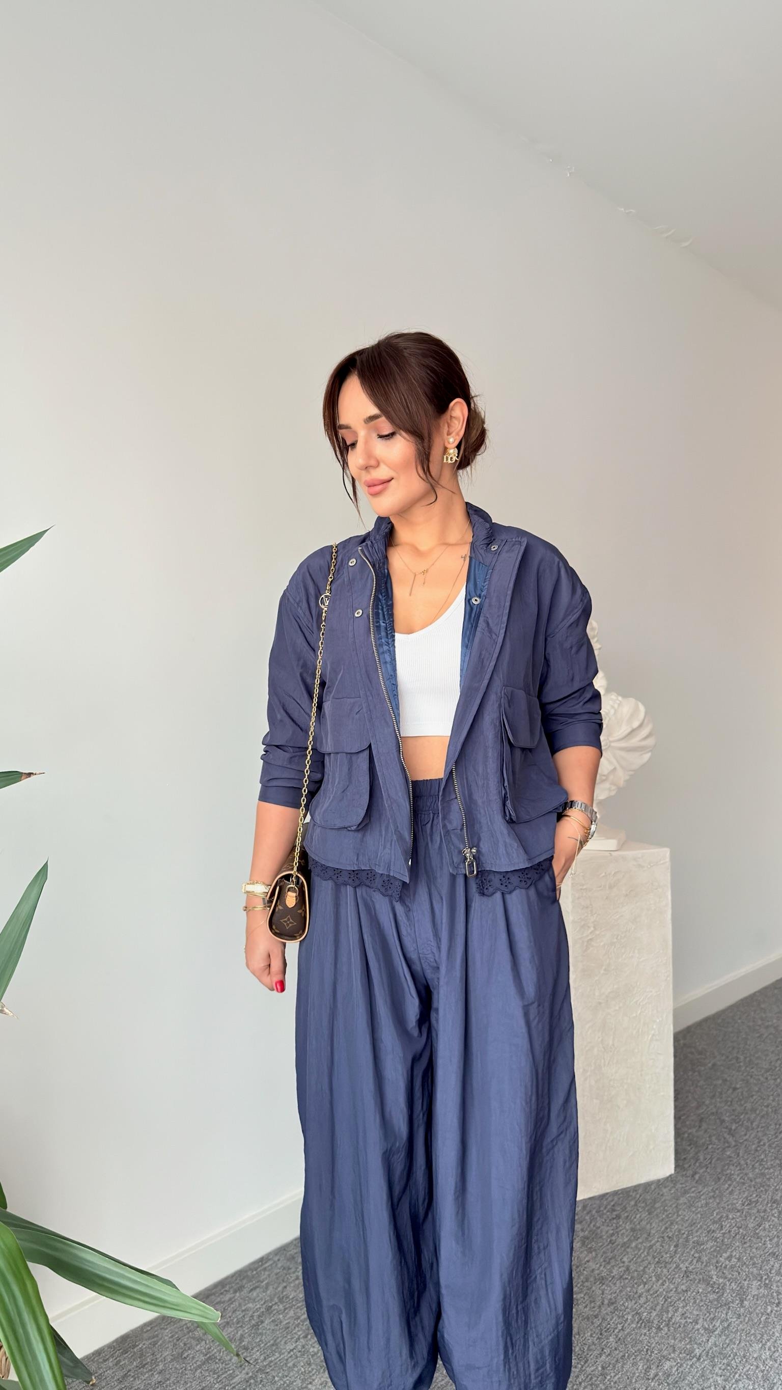 Lacivert Vika Brode Detaylı Paraşüt Takım