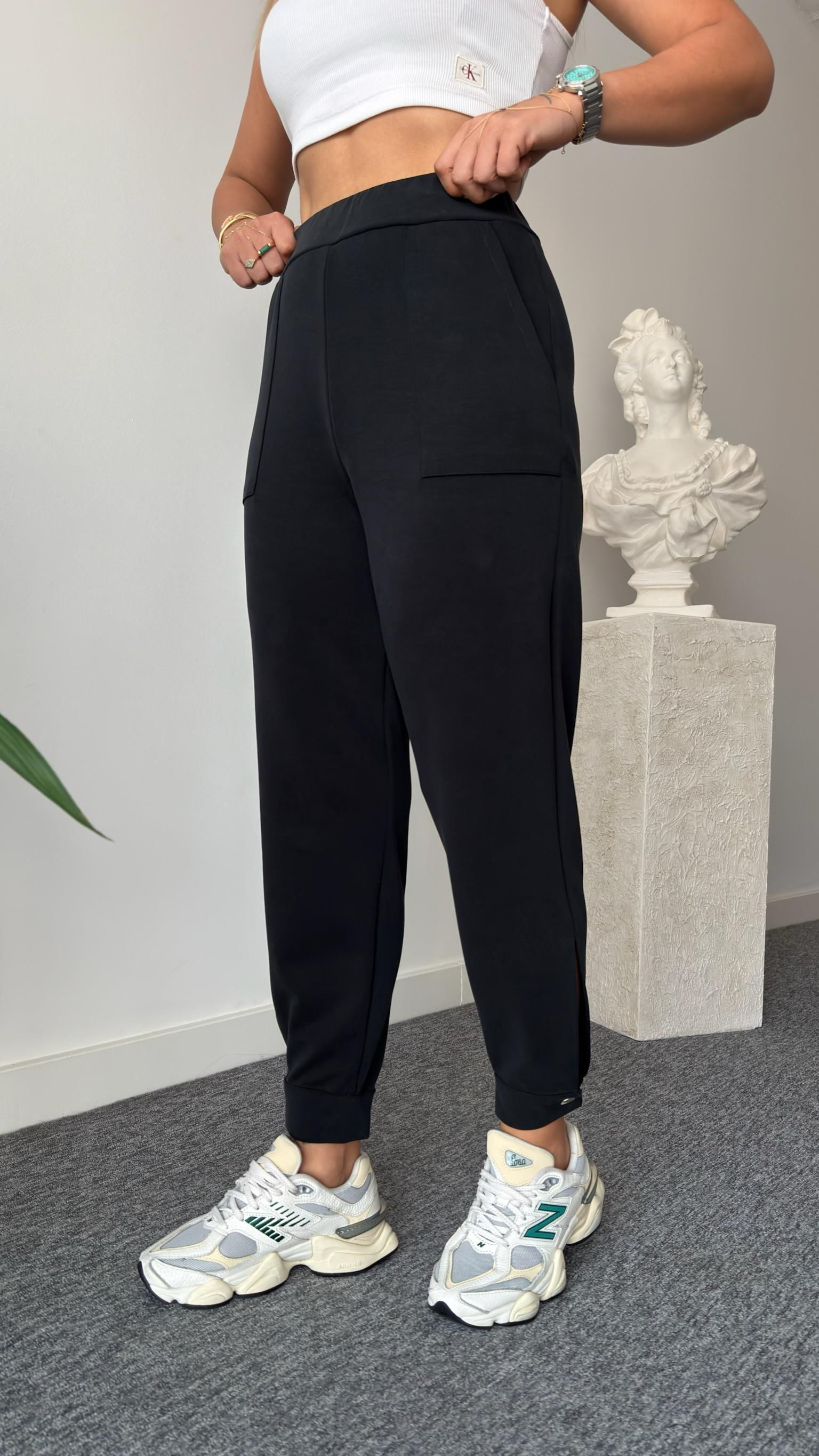 Oys Paça Düğmeli Siyah Modal Eşofman Altı