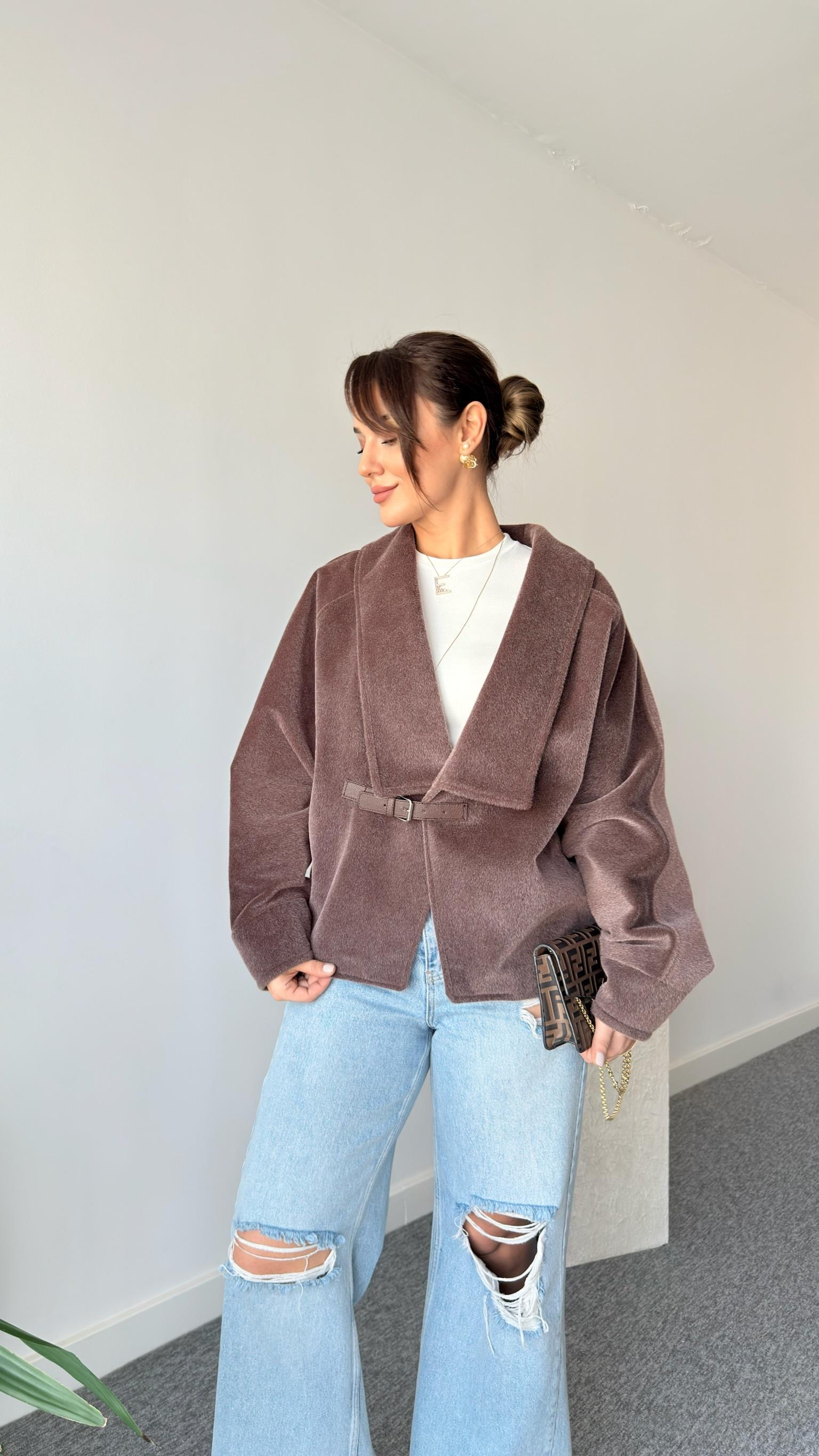 Rhone Deri Kemer Detaylı Kahve Kaşe Ceket