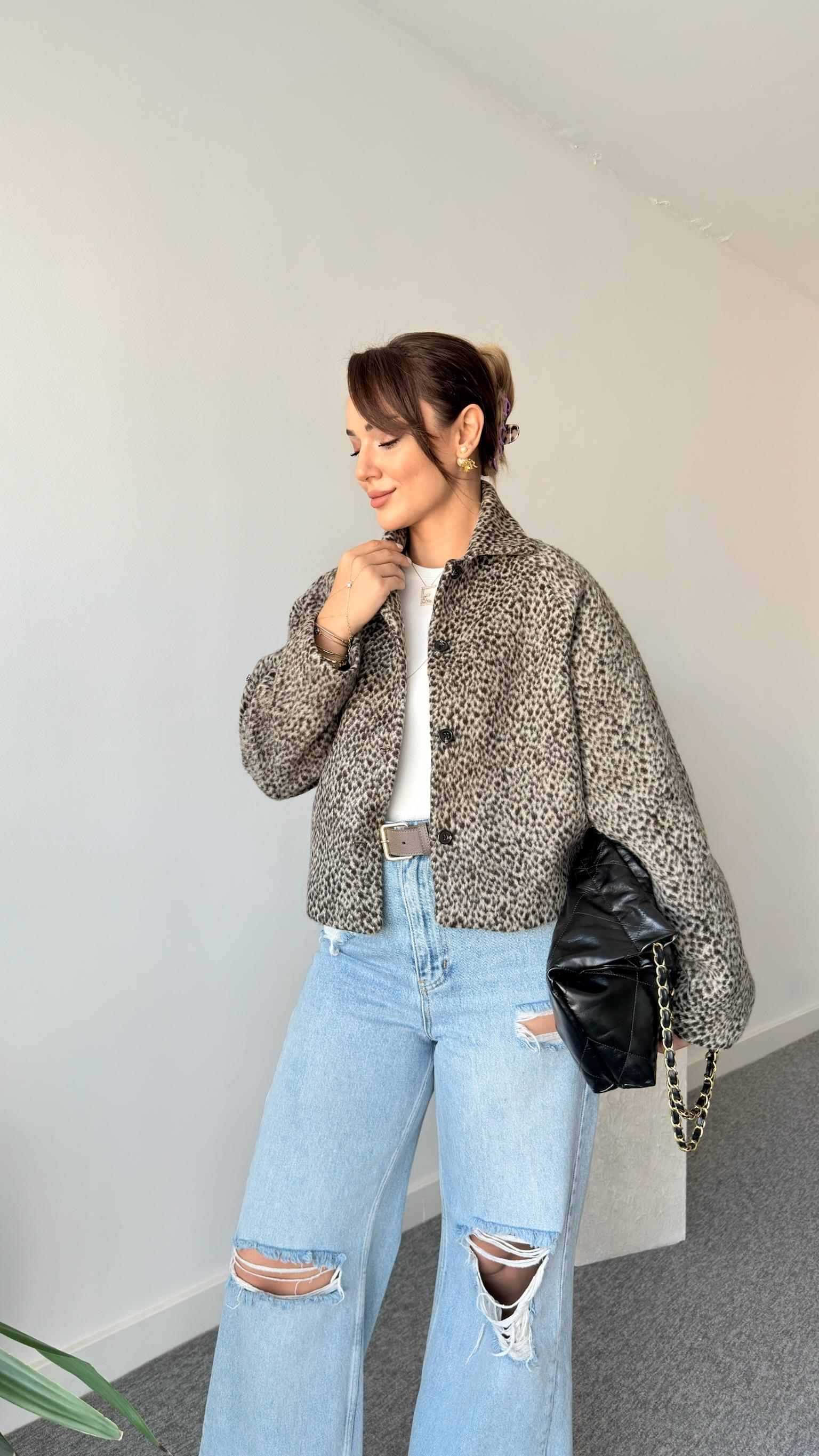 Ronde Massi Model Leopar Desenli Kaşe Ceket