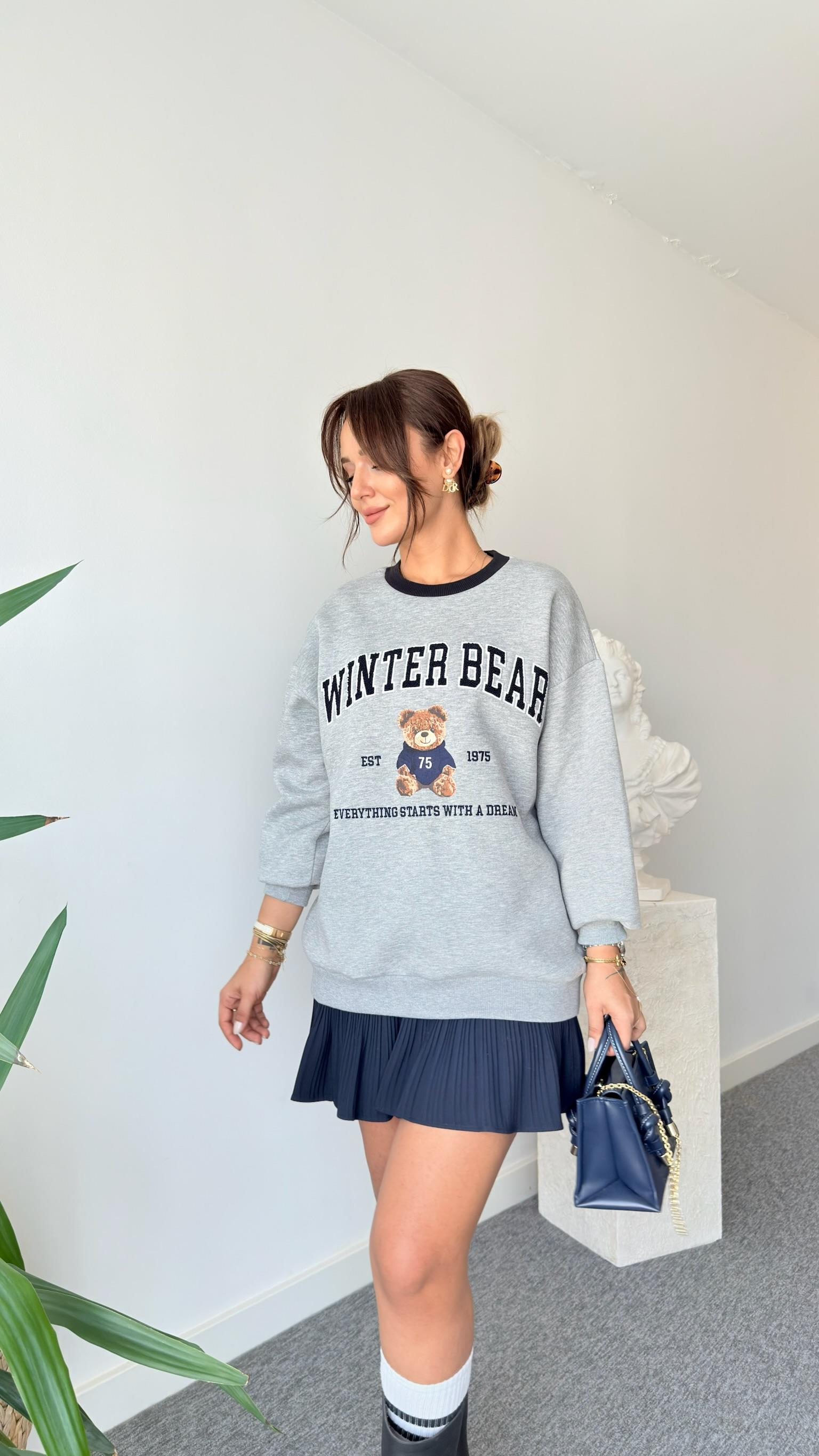 Rundo Ayıcık Detaylı Gri Sweatshirt