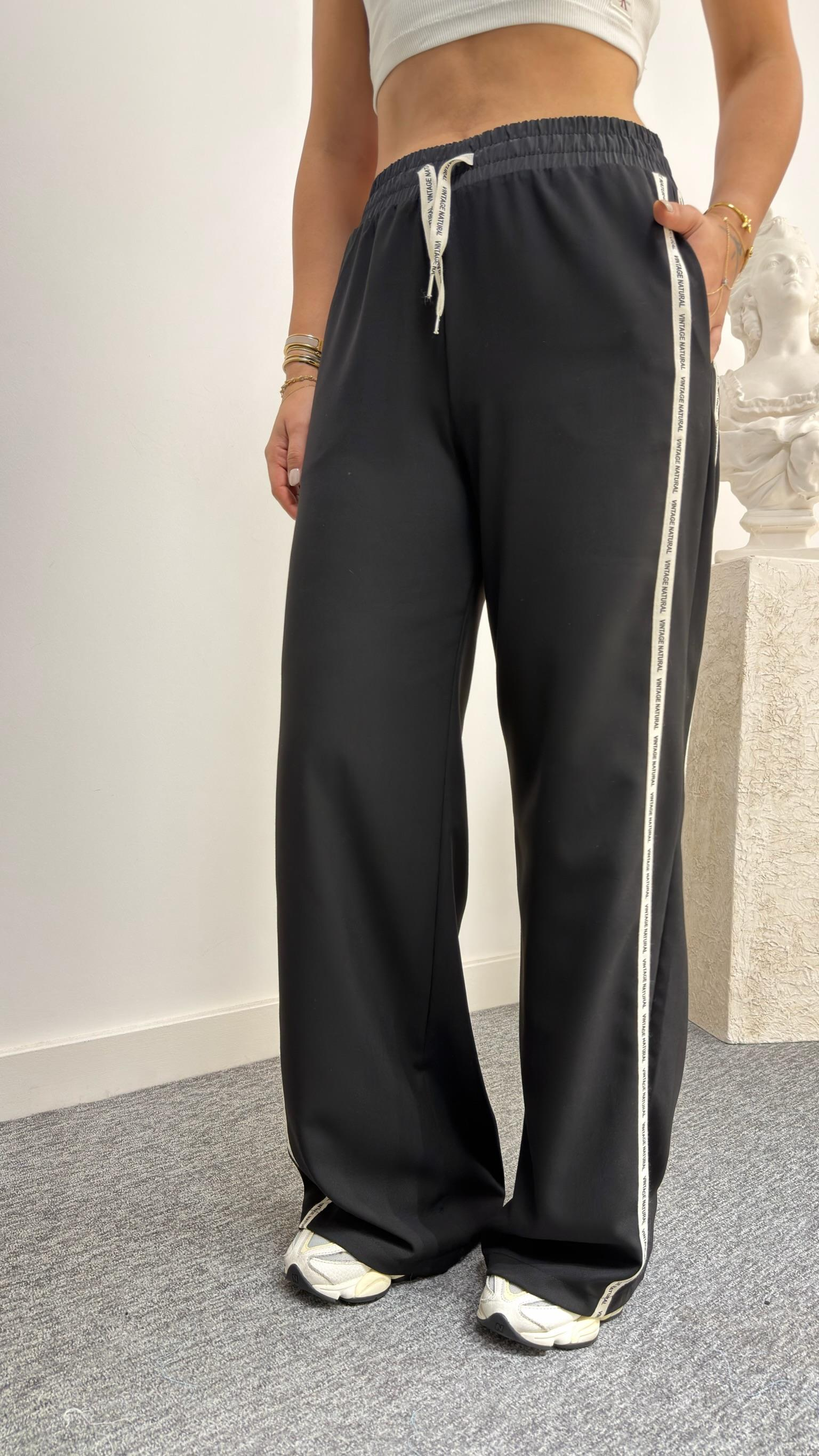 Siyah Dallin Paraşüt Ve Yazı Detaylı Pantolon
