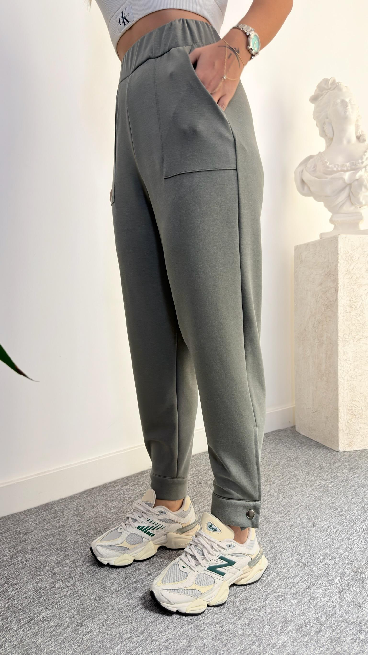 Yeşil Oys Paça Düğmeli Modal Eşofman Altı